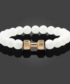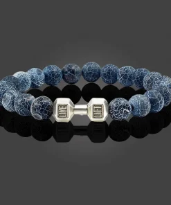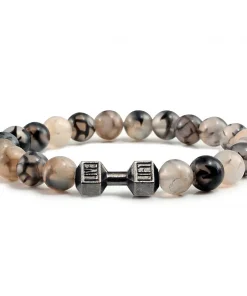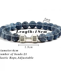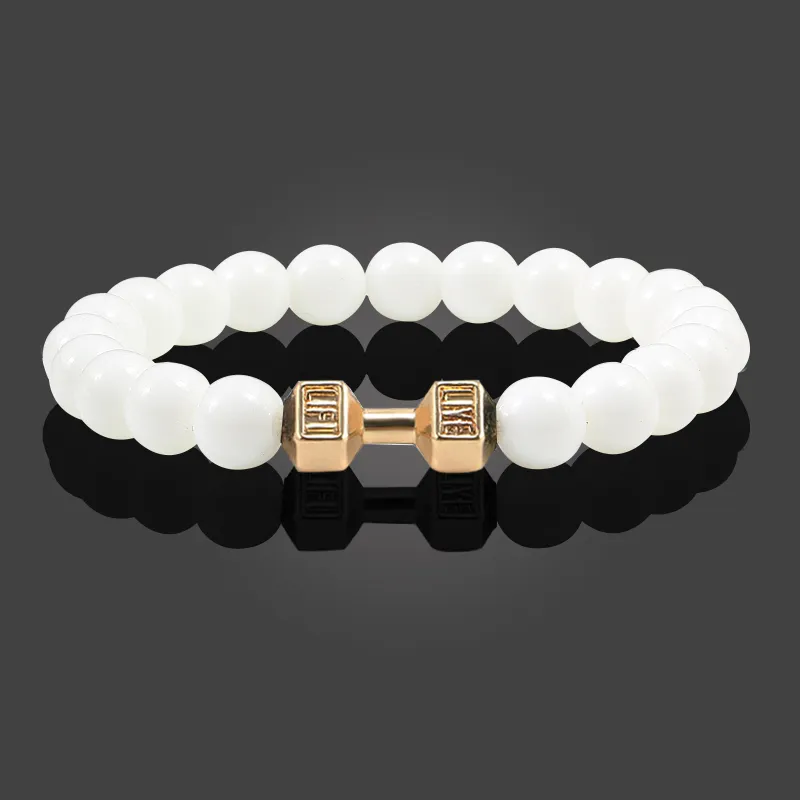 Natural Volcanic Stone Bracelet Men Matte Black Lave White Beads Charm Dumbbell Strand Bracelets Women Barbell Fitness Jewelry